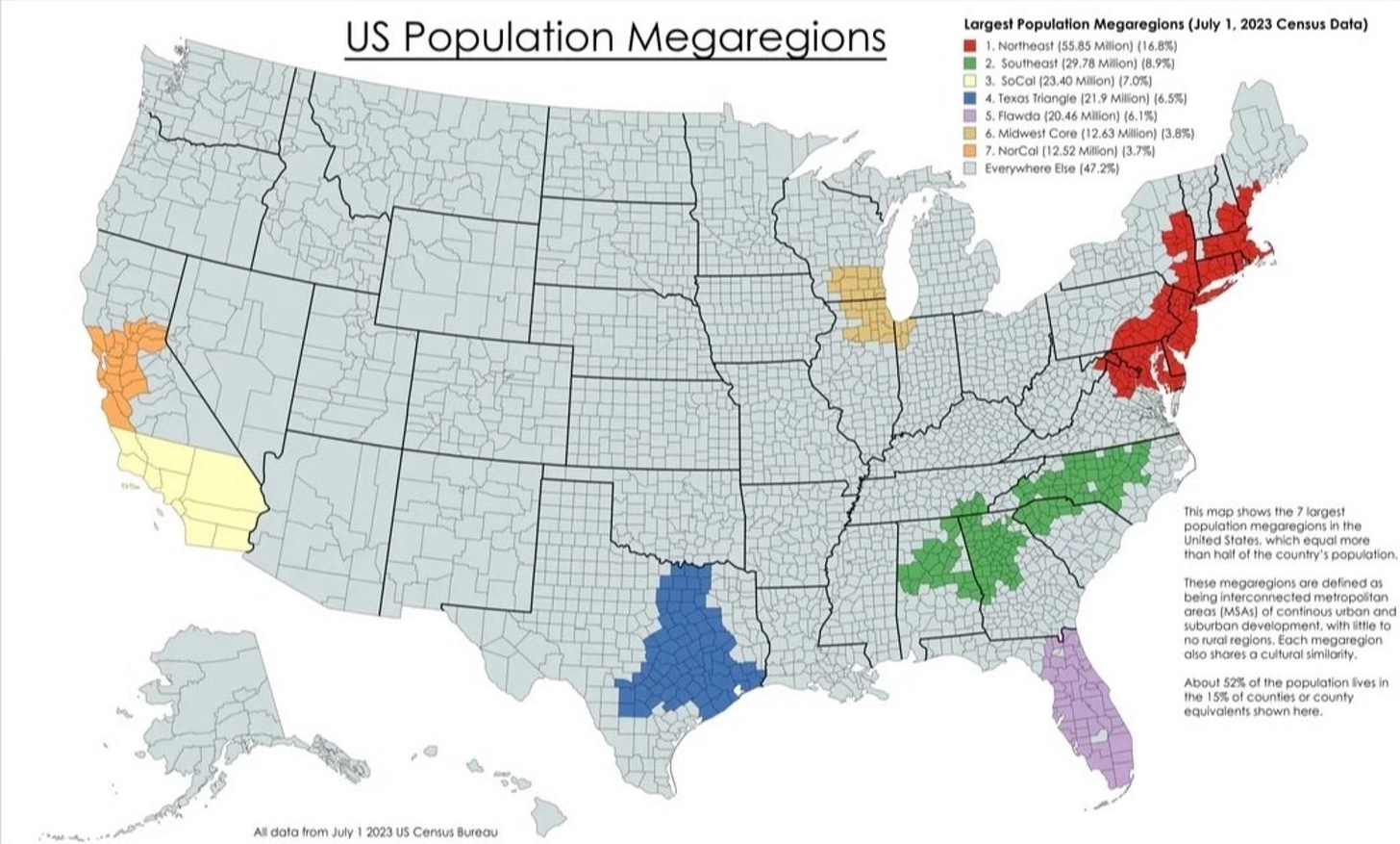 Michael A. Arouet: 52.8% of US population live in these seven areas