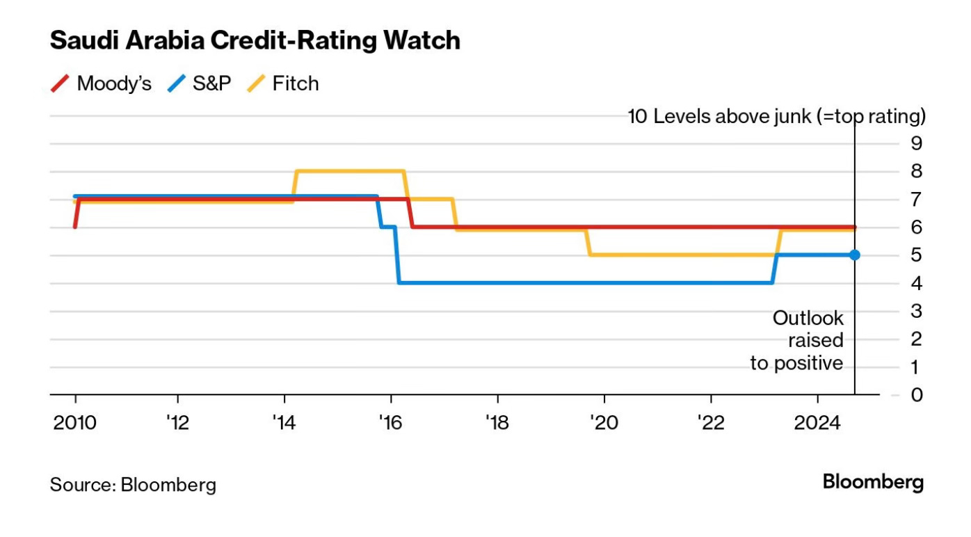 Bloomberg: S&P raised Saudi Arabia’s outlook to positive from stable and flagged the possibility for future ratings increases.