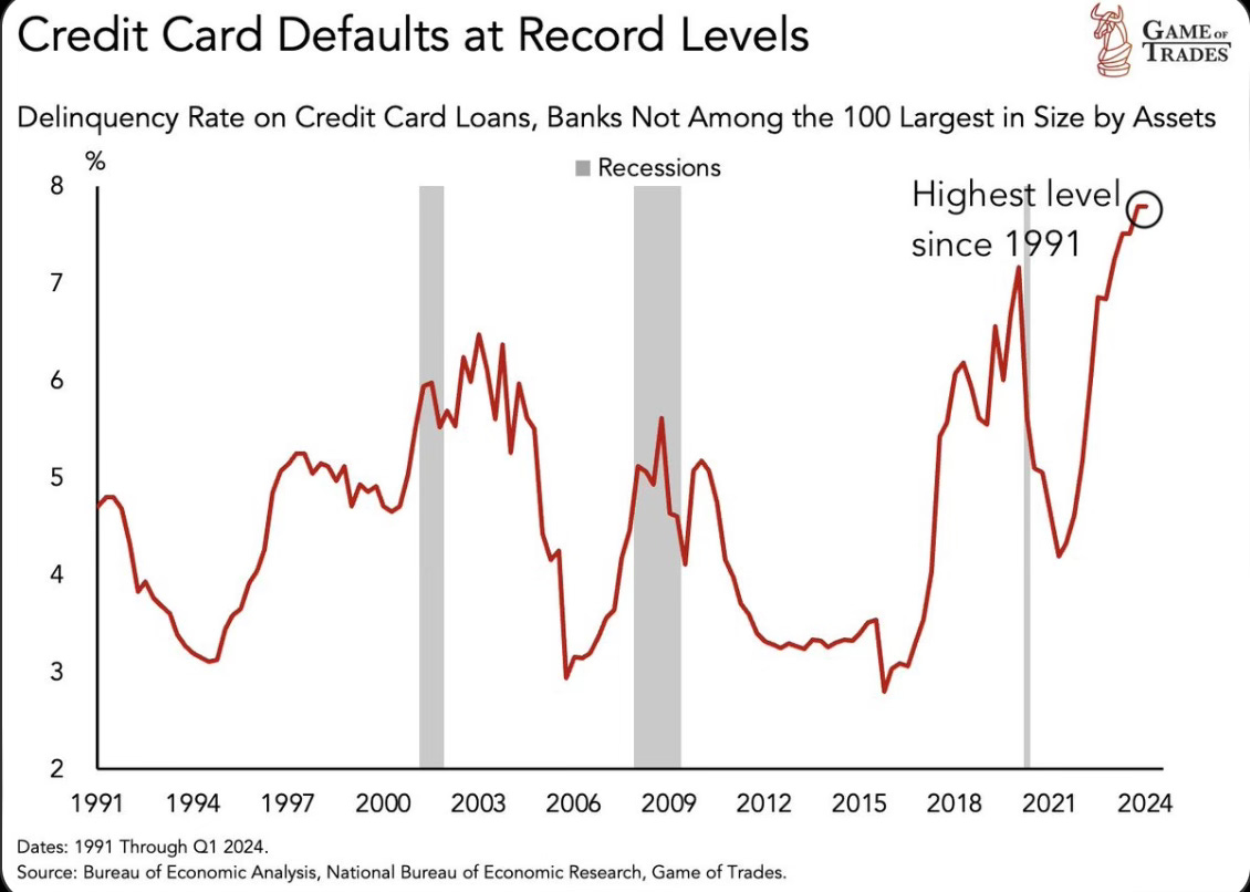 Game of Trades: Credit card defaults from small lenders hit RECORD highs. Crossing even the Dot Com bubble & Financial Crisis peaks. Consumers are nearing trouble.