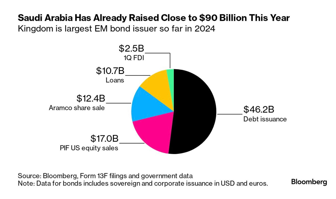 Bloomberg: While the flurry of bond sales creates questions about how much Saudi risk markets can absorb, the kingdom's “second to none in the world” in terms of capacity to bear more debt, Goldman Sachs’ Middle East and North Africa economist Farouk Soussa told Jennifer Zabasajja on Bloomberg TV. “From a balance sheet position, we are extremely relaxed,” he said, pointing to the kingdom’s 30% debt to GDP ratio and large foreign exchange reserves.